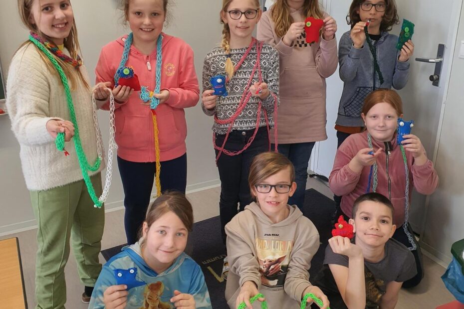 Fingerstricken (Schlangen) und kleine Monster aus Filz (Knöpfe annähen)
