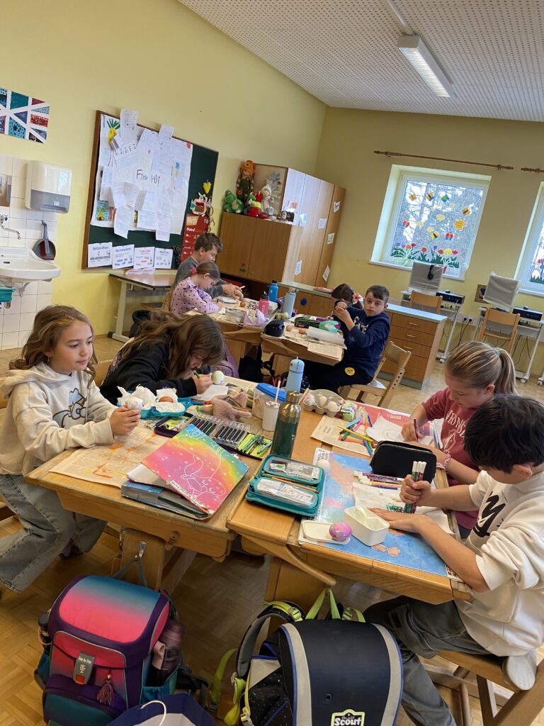 Man kann Ostereier verzieren und man kann mit Ostereiern auch tanzen. Unsere Kinder taten beides. Sowohl in „Kunst und Design“, als auch in „Bewegung und Sport“ habe wir uns an das Thema Ei angenähert.