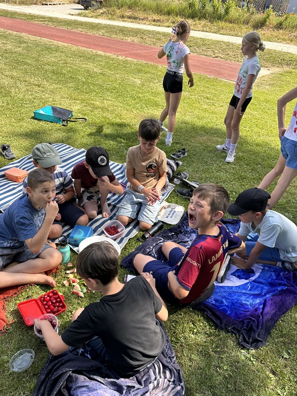 Bei sommerlichen Temperaturen verlegten unsere Klassen das Lesen kurzerhand ins Freie und veranstalteten ein gemütliches Lesepicknick. Unter schattigen Bäumen wurde in spannenden Büchern geschmökert, gemeinsam gelesen und dabei eine erfrischende Obstjause genossen. Die Kinder hatten sichtlich Spaß im Freien und nutzten die Gelegenheit, dem heißen Klassenzimmer für eine Weile zu entkommen. Ein schöner Mix aus Genuss, Entspannung und Lesefreude!