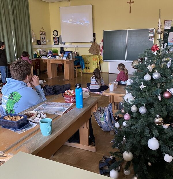 Weihnachtsfeier mit Klassenchristbaum, Punsch, Keksen und Weihnachtsfilm